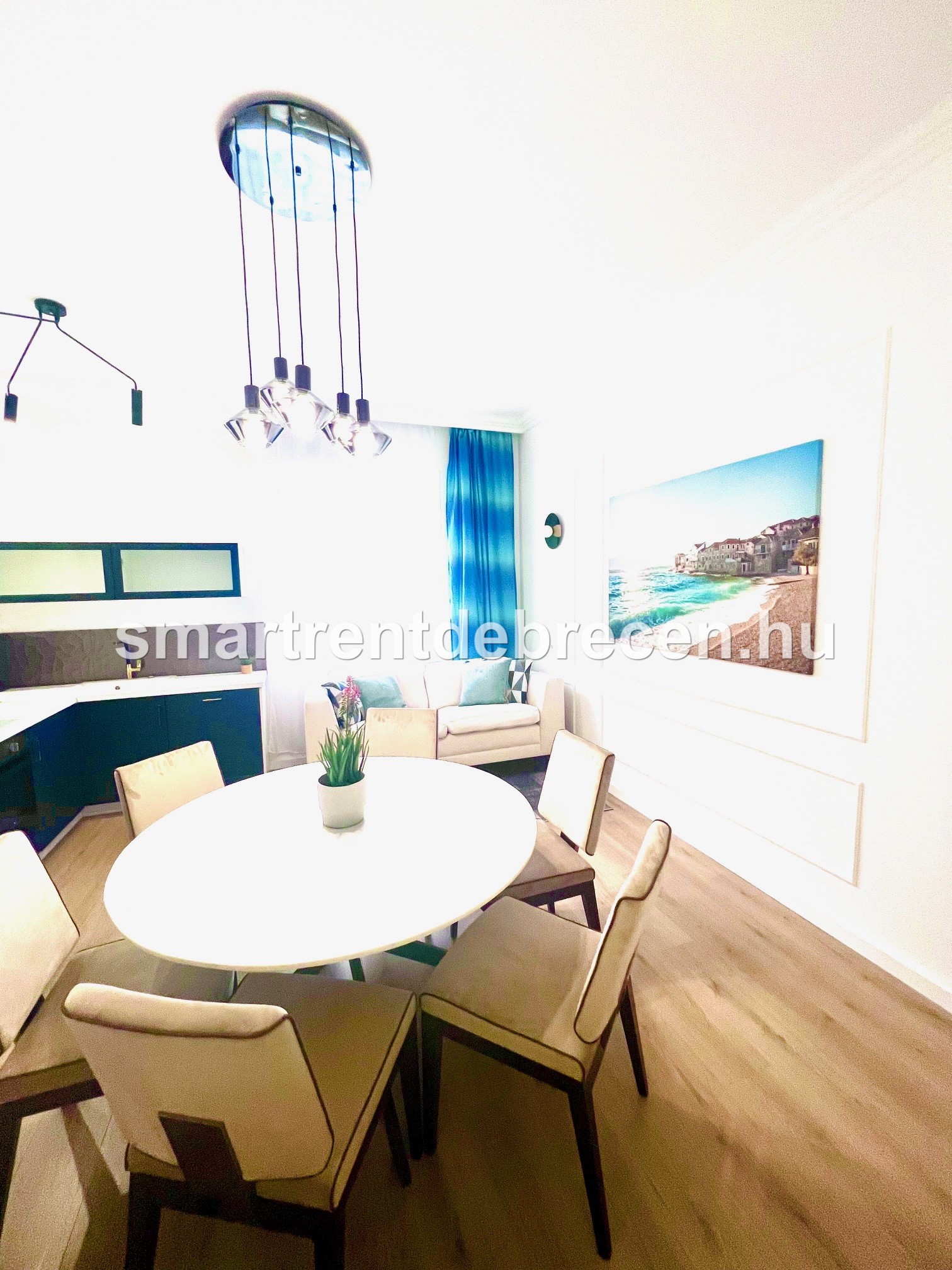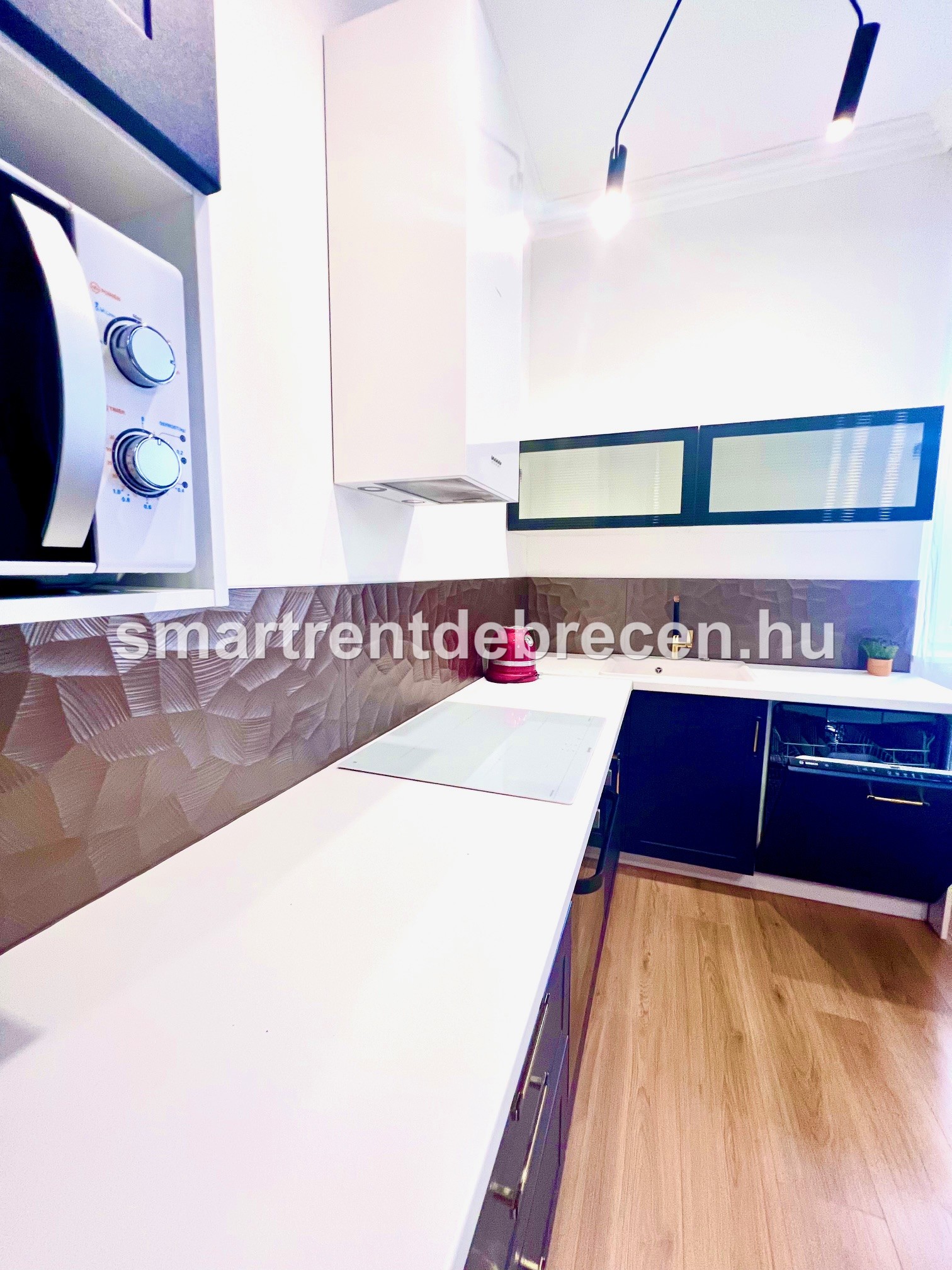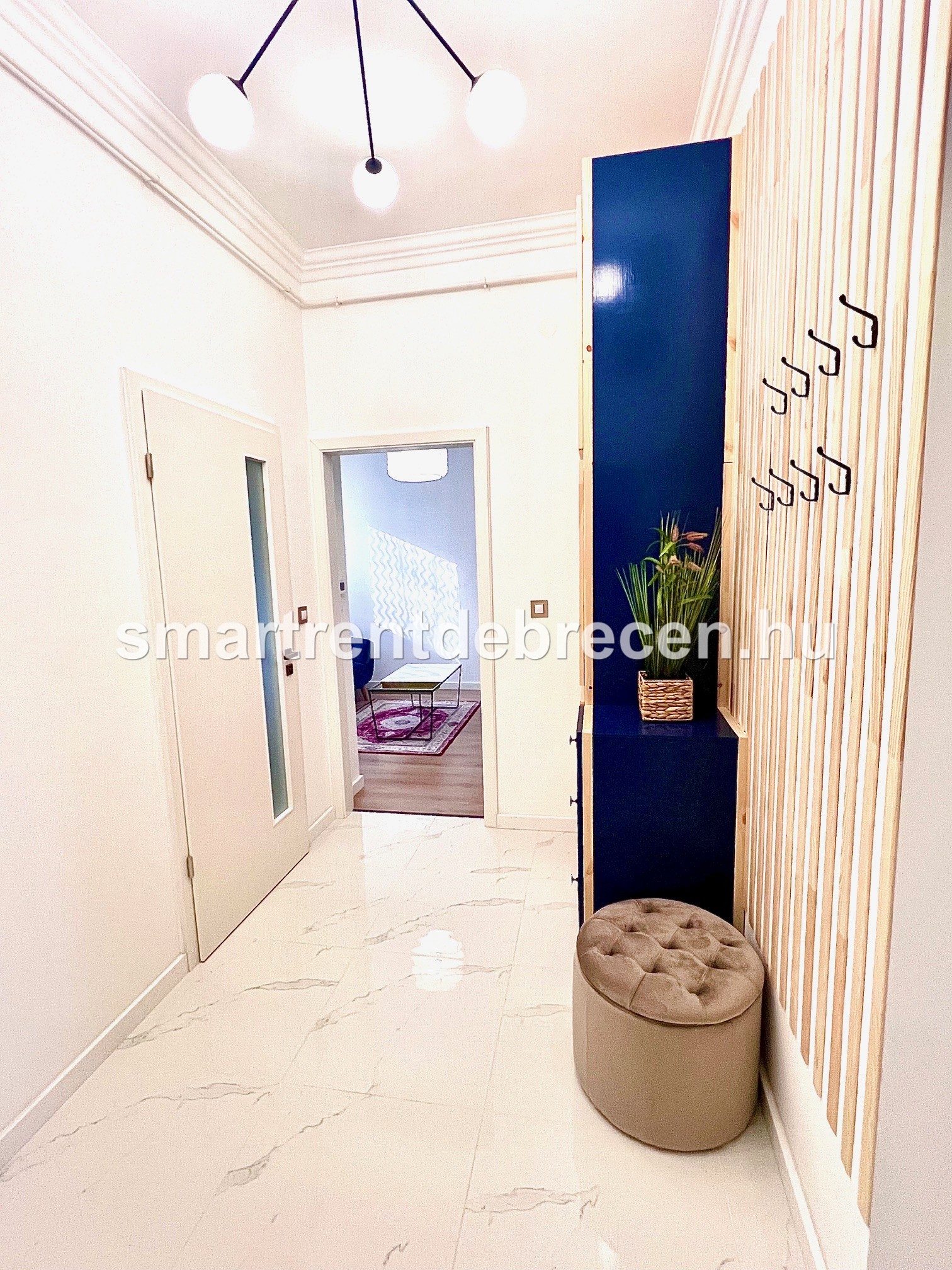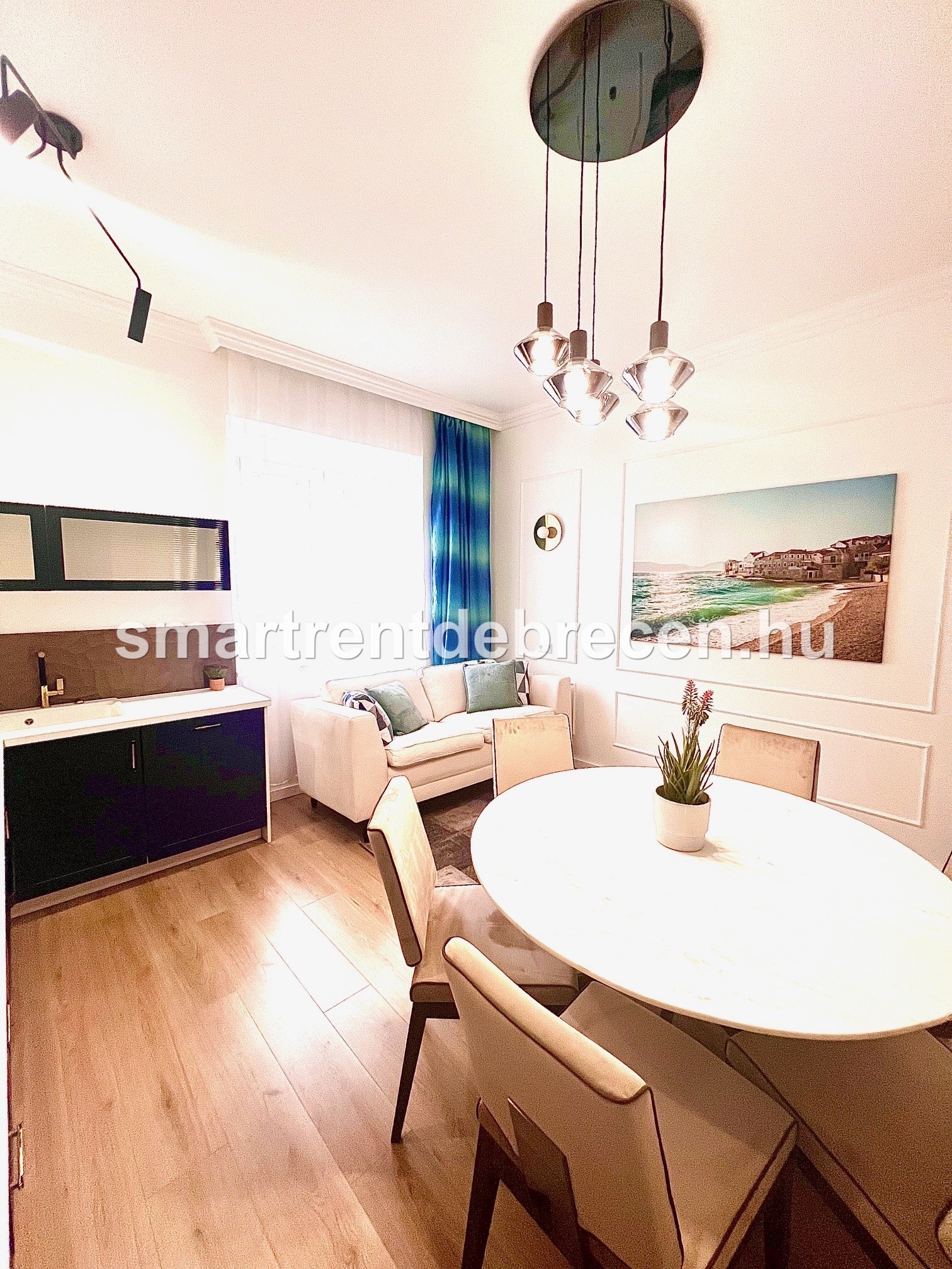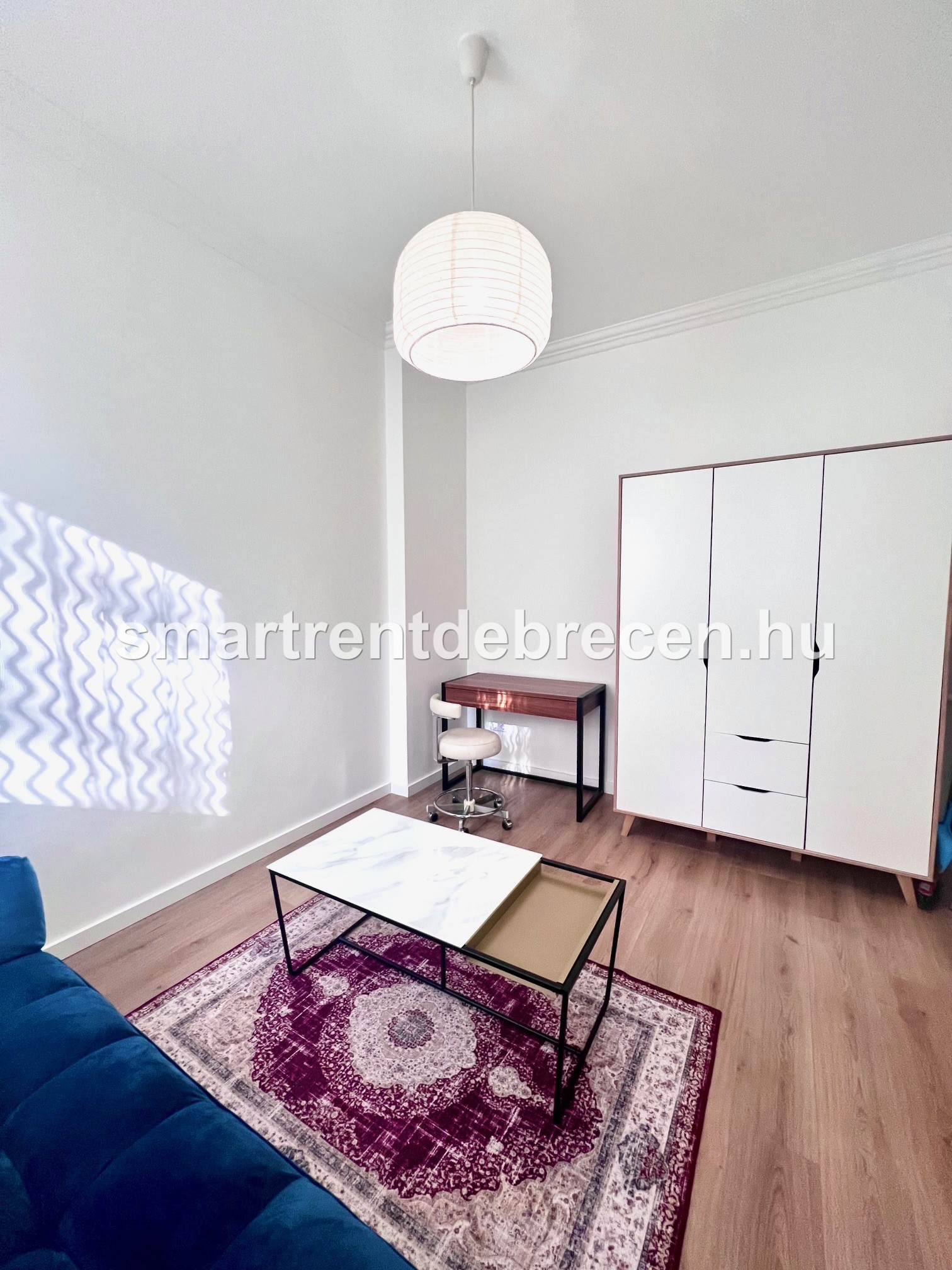 Debrecenben, a Belvároshoz közeli Budai Ézsaiás utcában kiadó egy 62 m²-es, teljes körűen, lakberendező által megújított, amerikai konyhás nappali + 2 hálószobás lakás.