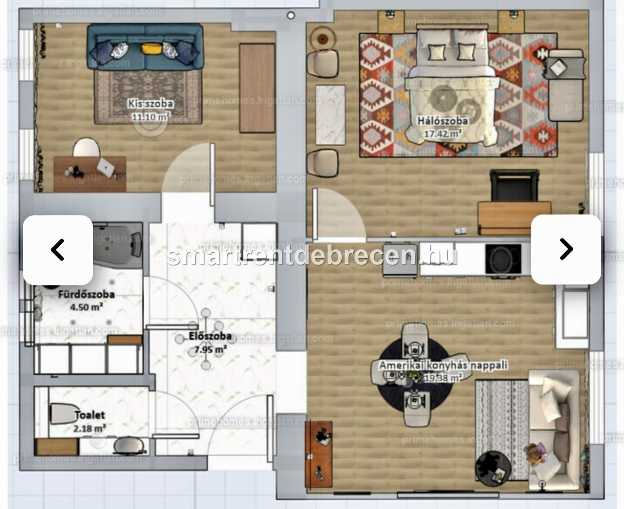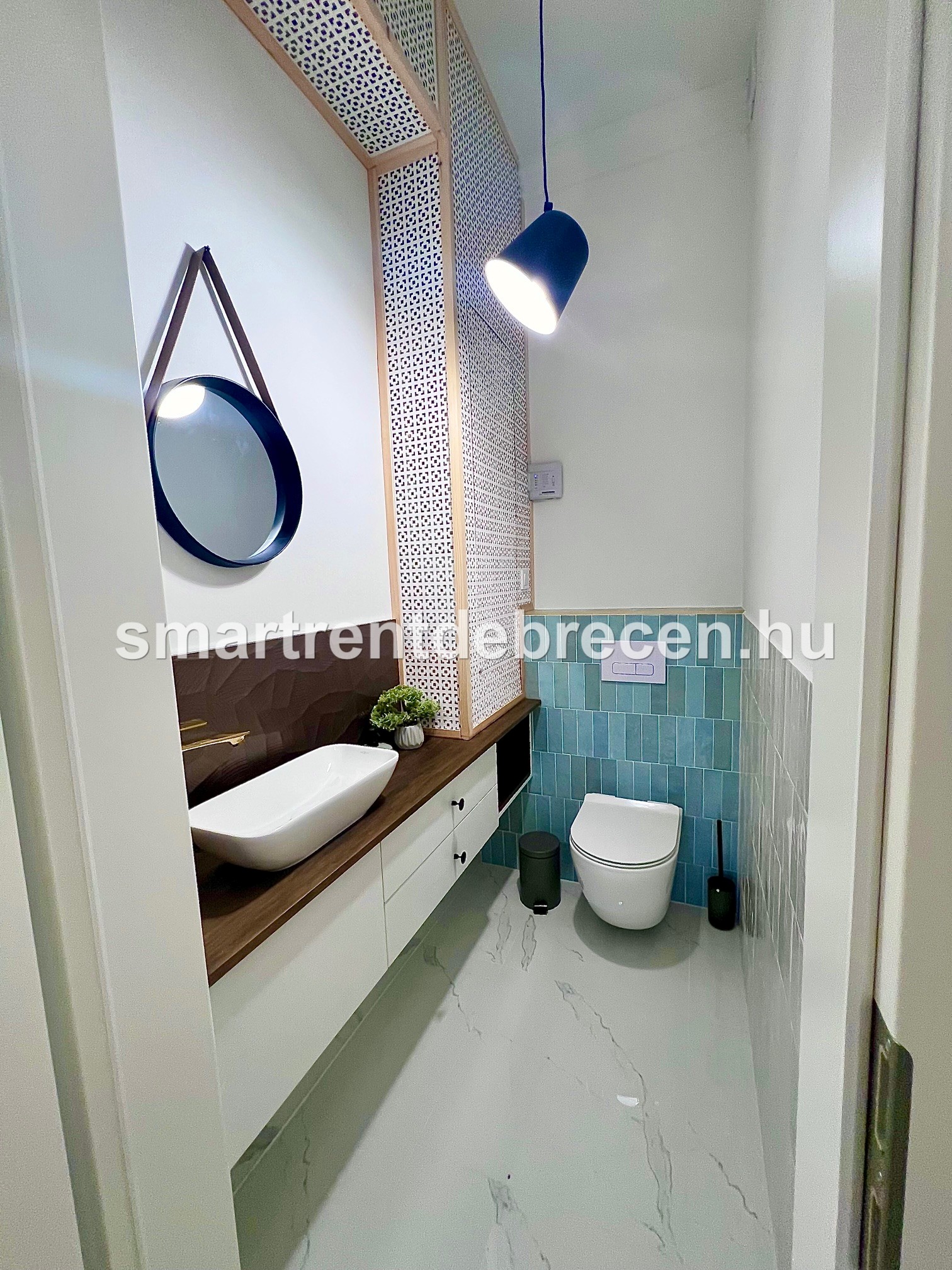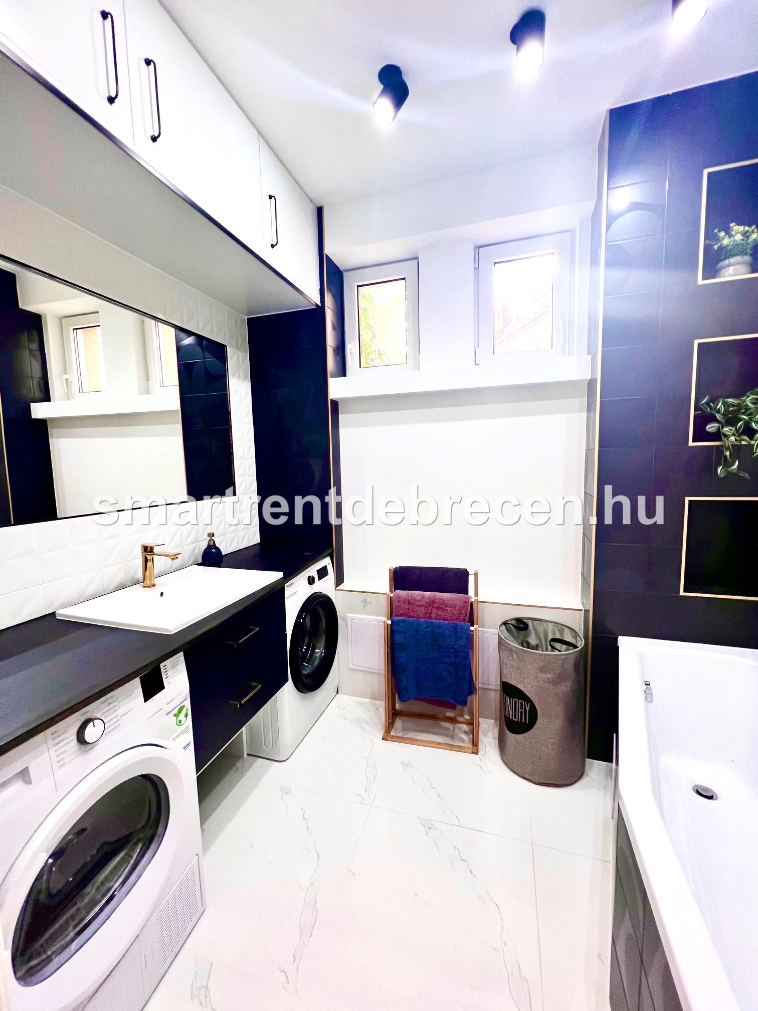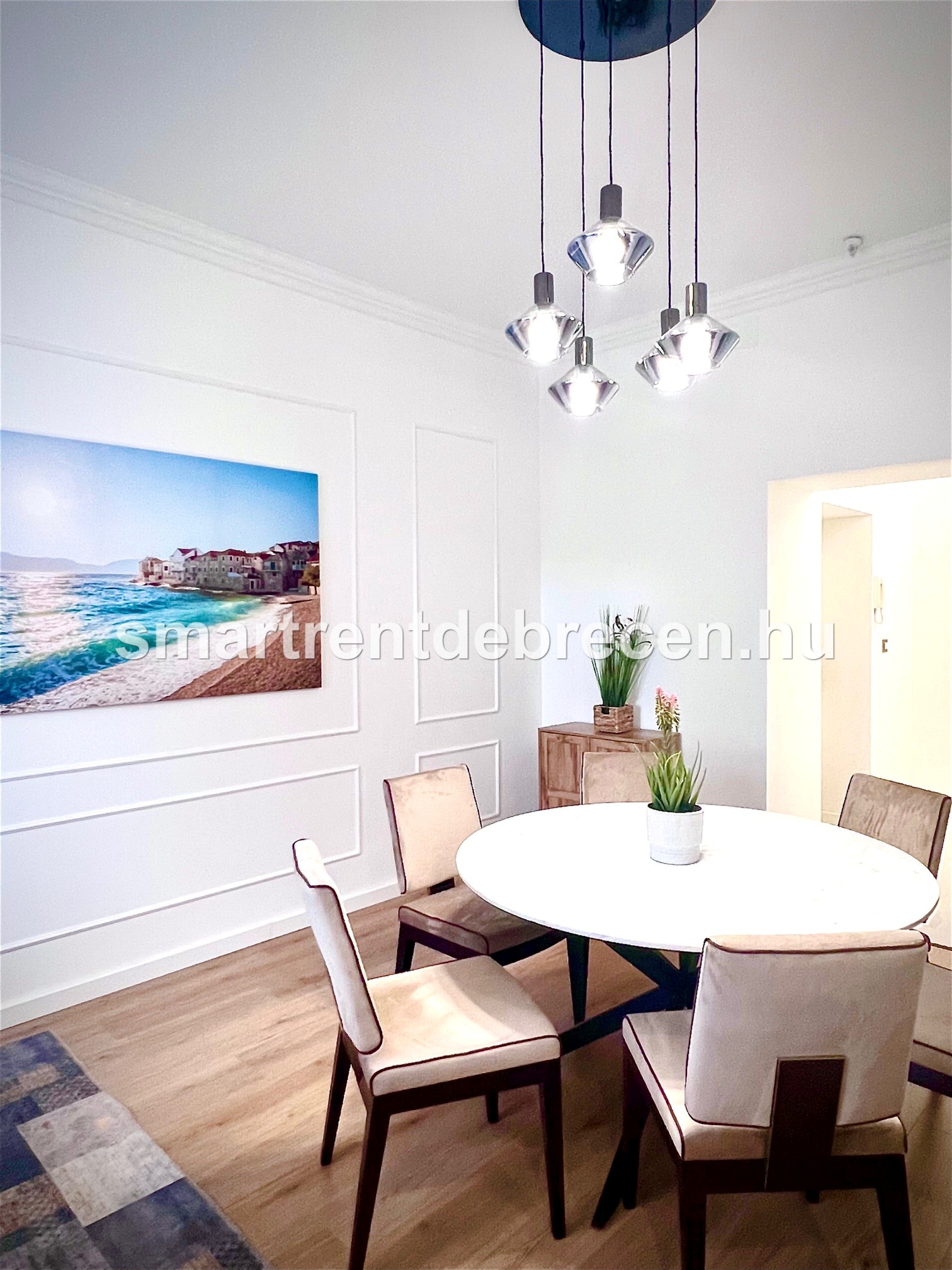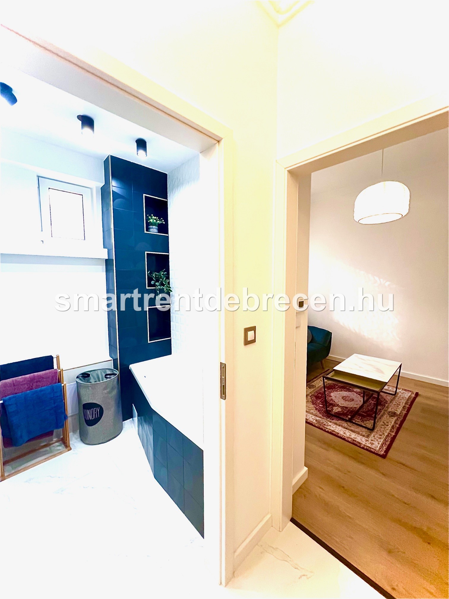Debrecenben, a Belvároshoz közeli Budai Ézsaiás utcában kiadó egy 62 m²-es, teljes körűen, lakberendező által megújított, amerikai konyhás nappali + 2 hálószobás lakás.