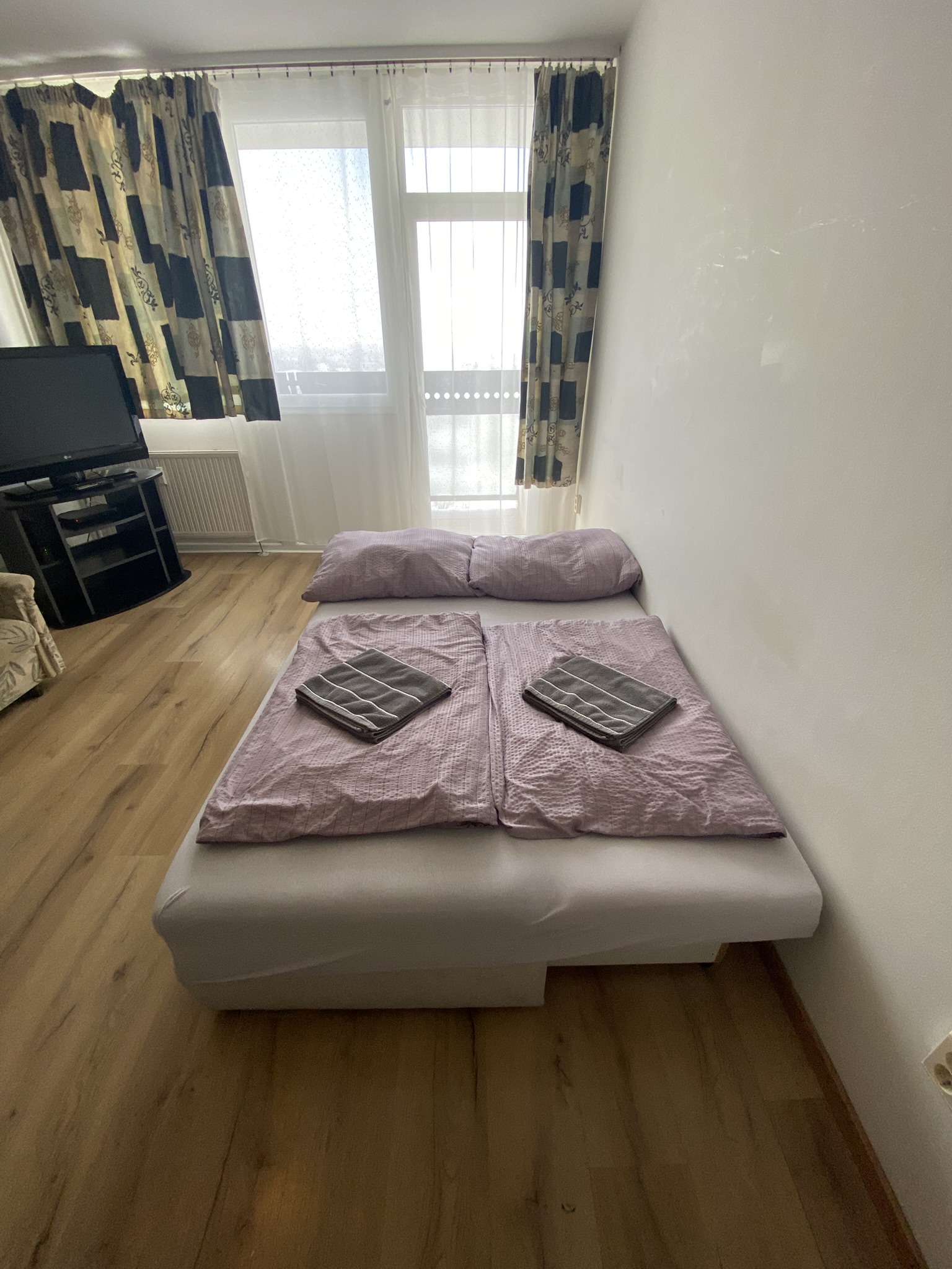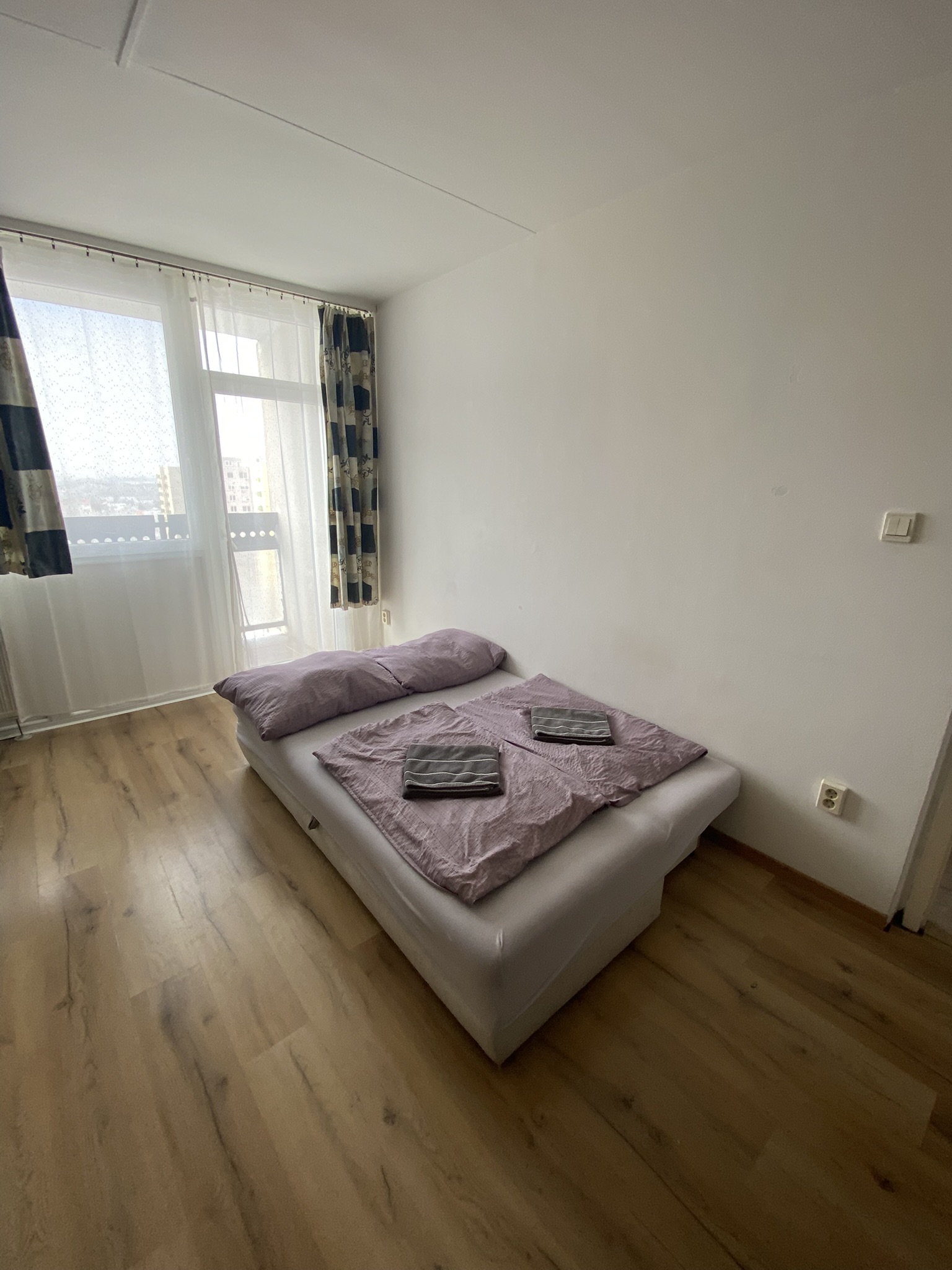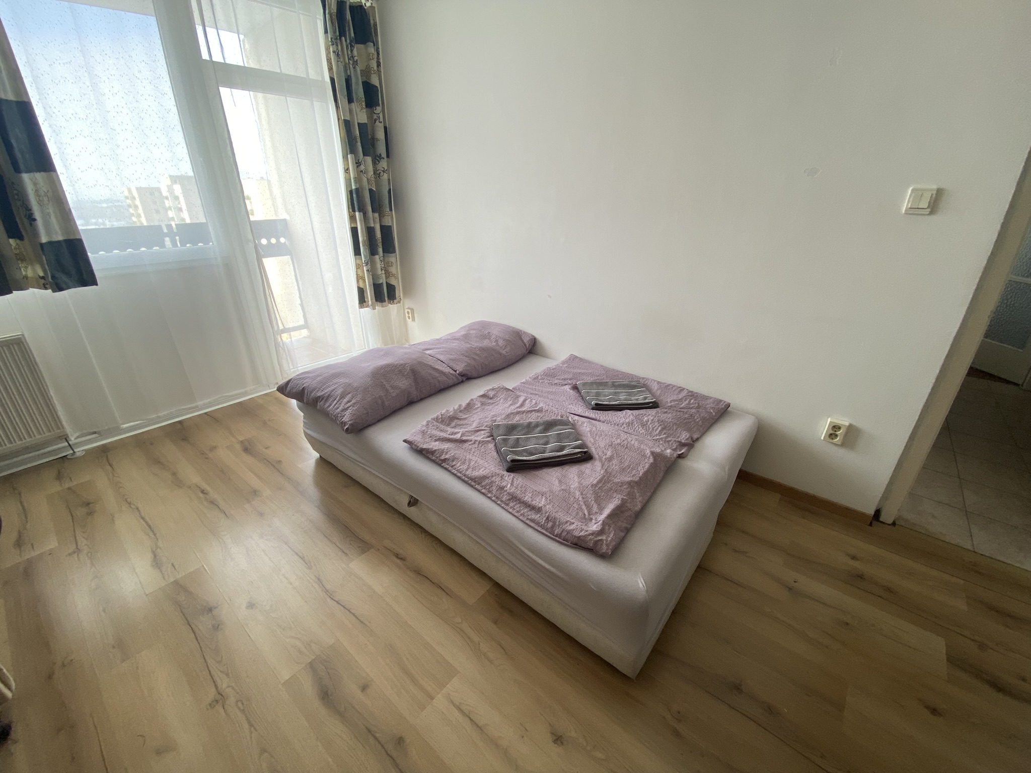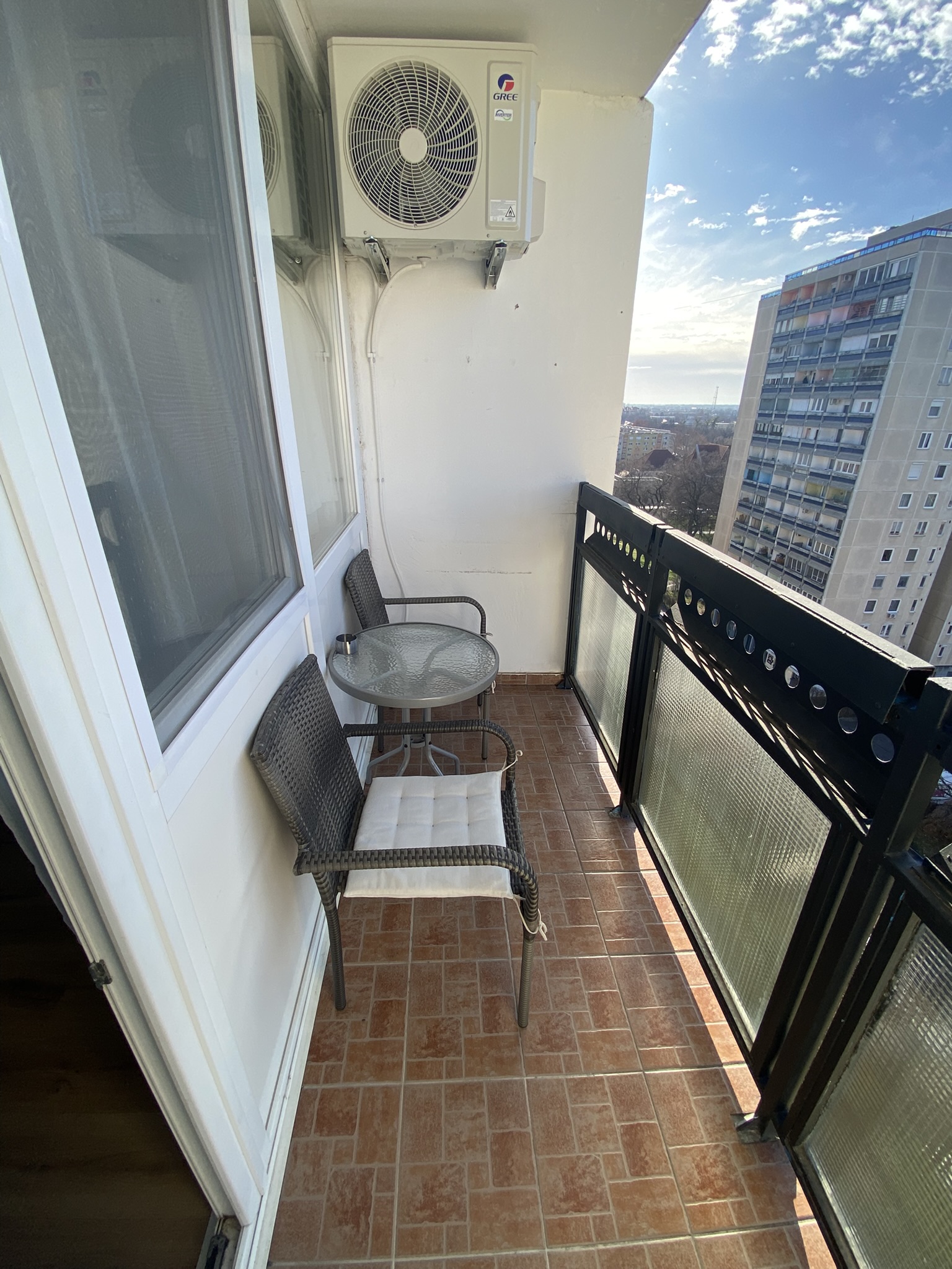 A tágas, két hálószobás apartmanban összesen akár 4 vendég számára is kényelmes elhelyezést biztosítunk. A nappalihoz erkély is tartozik, ahonnan szép kilátás nyílik a környező parkosított területre és városi panorámára, így tökéletes hely egy reggeli kávé vagy esti beszélgetés élvezetére.