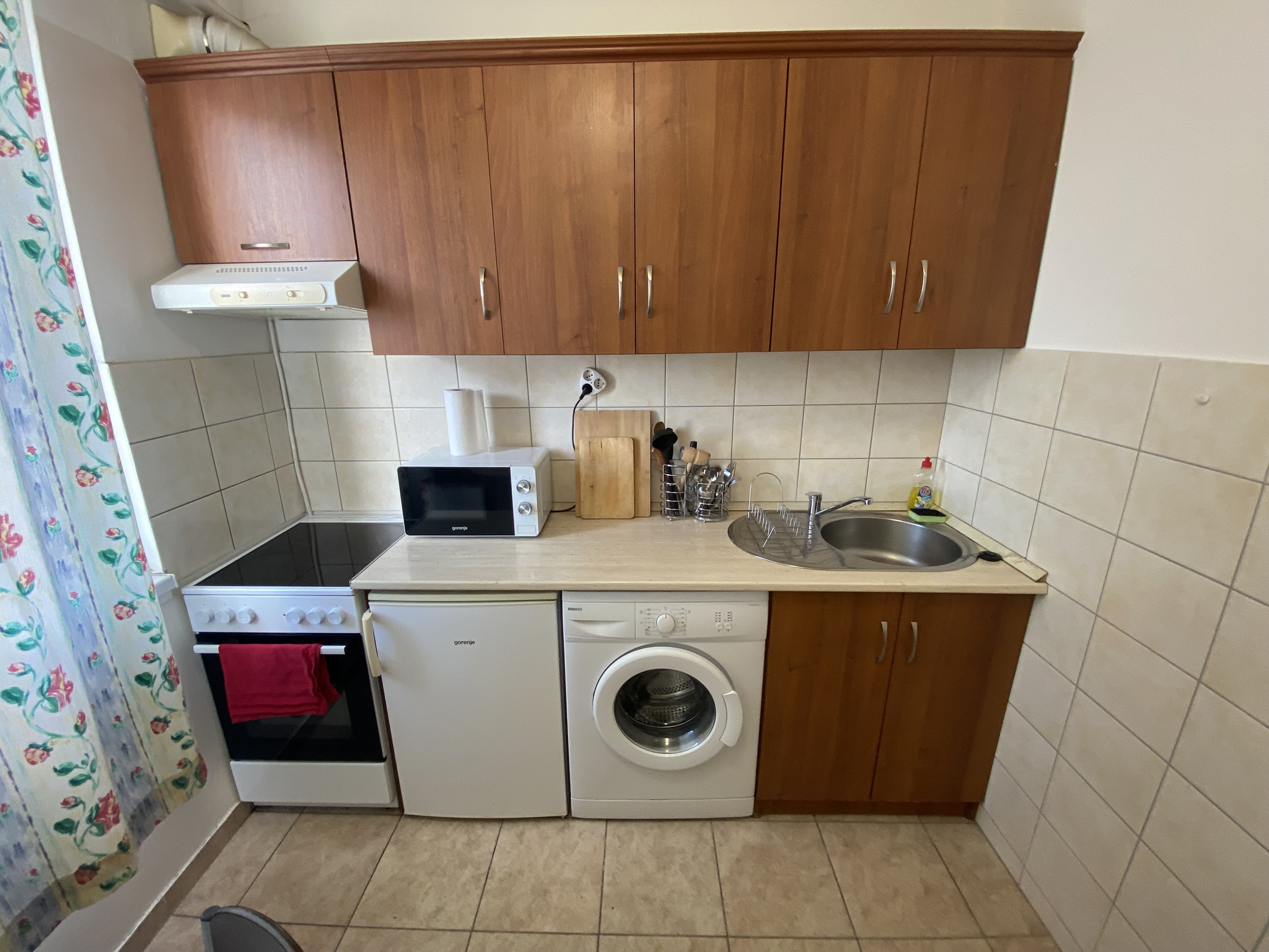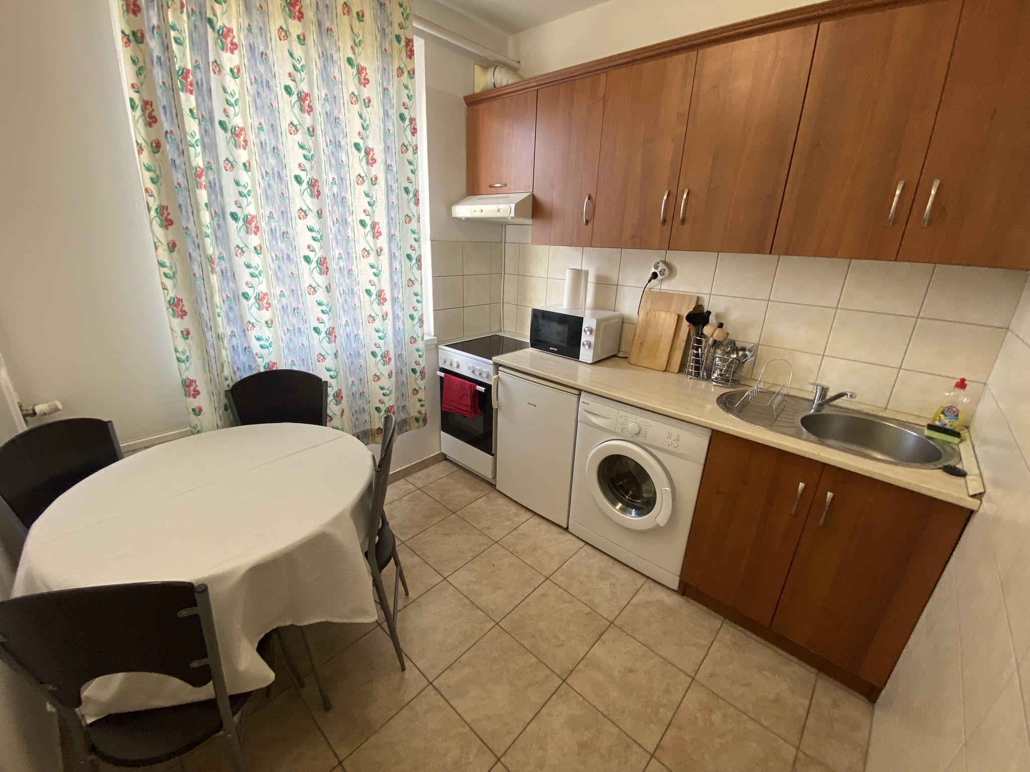 A modern és jól felszerelt konyha minden alapvető eszközzel rendelkezik, amire csak szükséged lehet: hűtőszekrény, mikrohullámú sütő, tea- és kávéfőző, valamint főzőedények és alapfűszerek segítik a kényelmes ételkészítést. A fürdőszoba zuhanyzóval és minden szükséges pipere-felszereléssel elérhető, továbbá rendelkezésre állnak törölközők, ágynemű és hajszárító is.